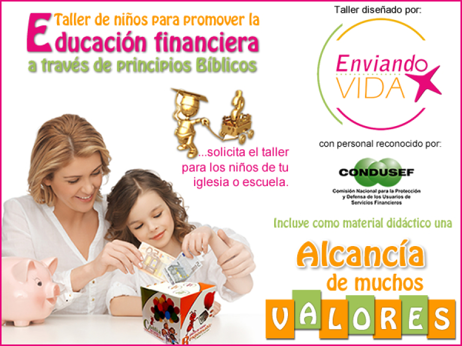 La buena Educación financiera debe fomentarse a temprana edad, sensibilizandolos de que el ahorro es bueno y debe ser una practica cotidiana. Para hablar de educación financiera en los niños Enviando Vida ha diseñado este taller que logra darse a entender con los niños de una manera divertida y clara...