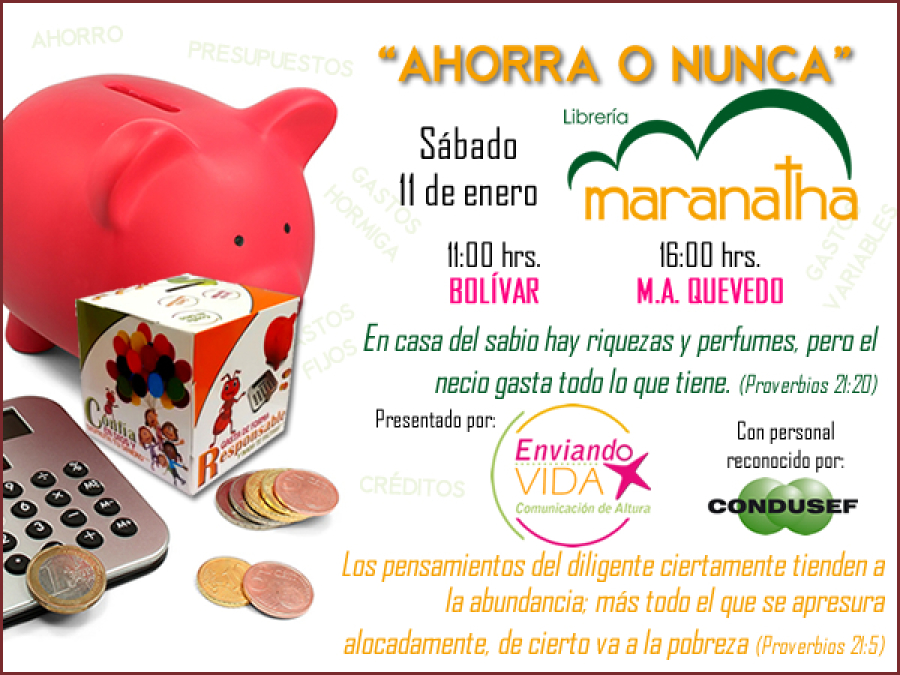 En esta Conferencia además de los temas tradicionales acerca de honrar a Dios con nuestras finanzas, abordaremos la importancia de la Educación Financiera en nuestras vidas; ¿Qué es el ahorro?, tarjetas de crédito, gastos necesarios, gastos hormiga y muchos temas más...