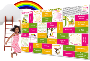 Si ya conoces nuestra versión de Serpientes y Escaleras de valores, esta nueva versión de promesas te va a encantar, esperamos que este nuevo material didáctico con principios bíblicos sea de edificación a tu vida y te permita edificar muchas vidas pues es un buen material para compartir en escuelas de verano, escuelas dominicales e incluso como material de evangelización. Si quieres conocer más acerca de este material da clic aquí.