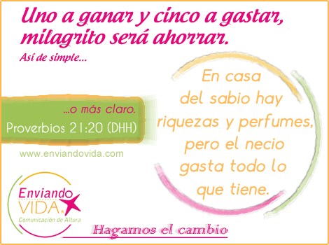 Mejor aprendamos a organizar nuestras finanzas cuando menos 10% para Dios, 10% para ahorrar y con el 80% aprendamos a vivir. Sé un buen administrador, nunca gastes más de lo que tienes o recibes, es más inteligente posponer una compra que tal vez ni siquiera necesites, a vivir mañana preocupado de cómo vas a pagarlo. Seamos buenos administradores de nuestros recursos, ahorremos y vivamos sabiamente. Alejémonos del consumismo y del derroche, que no nos dejará nada bueno.